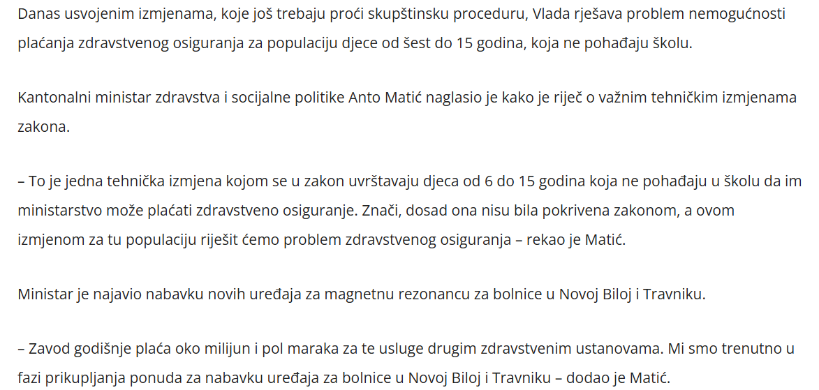 Podijeli Facebook Email Vlada Srednjobosanskog kantona je na 98. sjednici održanoj u Travniku, usvojila i Prijedlog zakona o izmjeni Zakona o zdravstvenom osiguranju. Izvor: Bug.ba Komentari